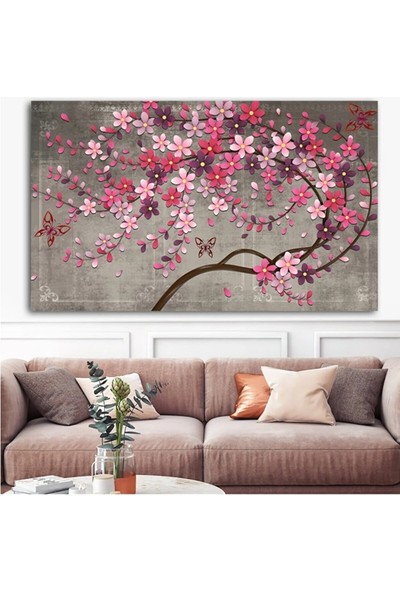 AR AJANS KANVAS TABLO Dev Boyut Renkli Çiçekli Ağaç Tasarım Kanvas Tablo AR077