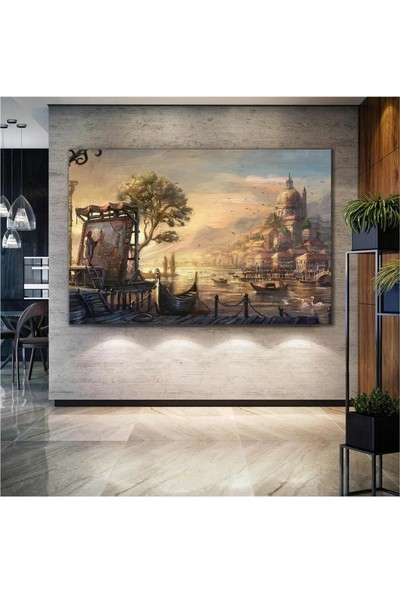 AR AJANS KANVAS TABLO Modern Şehir Hayatı Yağlı Boya Efektli Şehir Resmi Çizen Ressam Kanvas Tablo ART00193