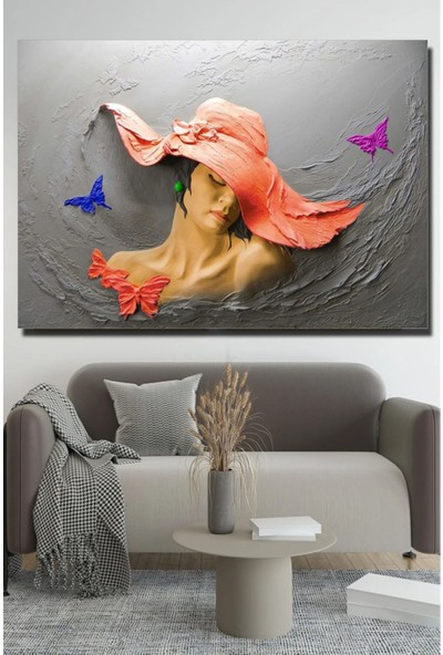 Ar Ajans Kanvas Tablo Kırmızı Şapkalı Kadın 3D Görünümlü Kanvas Tablo