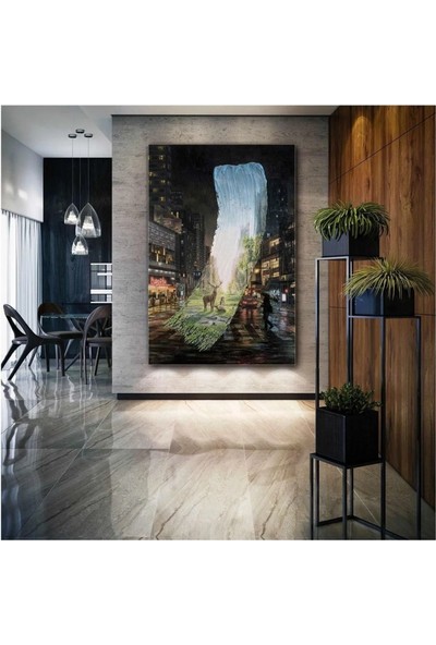 Ar Ajans Kanvas Tablo Kayıp Doğa Geyik Manzara Şehir Kanvas Tablo