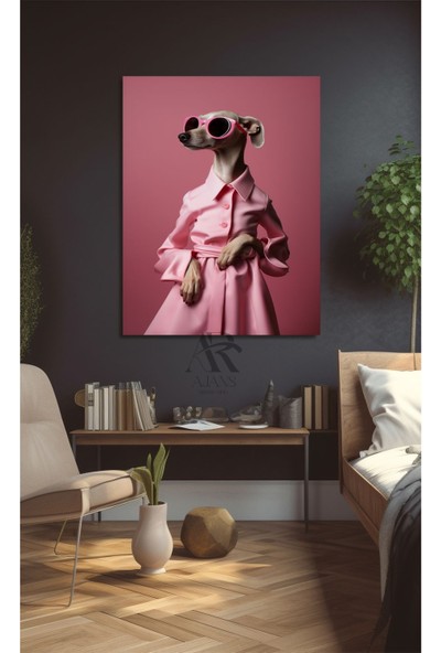 Ar Ajans Kanvas Tablo Pembe Elbiseli Gözlük Takan Köpek Kanvas Tablo