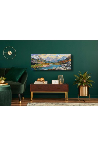 AR AJANS KANVAS TABLO Yağlı Boya Görünümlü Nehir ve Doğa Manzarası Kanvas Tablo D28