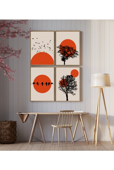 AR AJANS KANVAS TABLO Sunset Quartet (Gün Batımı Dörtlüsü) Çerçeve Görünümlü Dekoratif 4'lü Set Mdf Tablo
