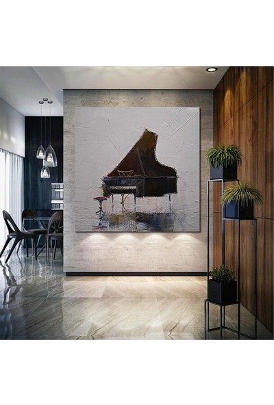 Ar Ajans Kanvas Tablo Piyano Yağlı Boya Efektli Müzik Sanat Dekor Kanvas Tablo