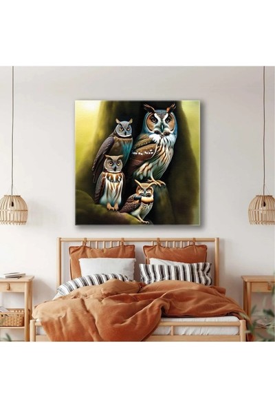 AR AJANS KANVAS TABLO Sevimli Baykuş Ailesi Bilge Hayvan Dekoratif Kanvas Tablo ART00199