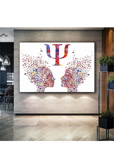 AR AJANS KANVAS TABLO Psikolog Büro Psikoloji Psi Sembolu Renkli Insan Kafaları Çift Kanvas Tablo ART00116
