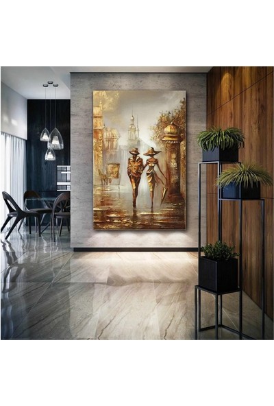 AR AJANS KANVAS TABLOSokakta Yürüyen Şemsiyeli Çift Bronz Nostalji Aşk Love Dekor Kanvas Tablo ART0087