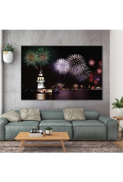 Ar Ajans Kanvas Tablo Istanbul Kız Kulesi Gece Işıklar Içinde Havayi Fişek Gösterisi Kanvas Tablo