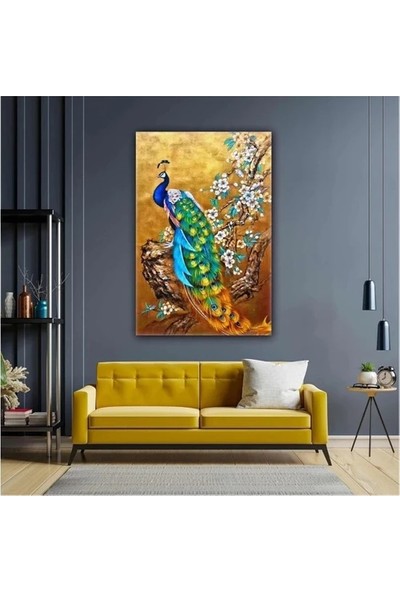 Ar Ajans Kanvas Tablo Yağlı Boya Efektli Tavus Kuşu Gold Kiraz Ağacı Kanvas Tablo ART0049 Tablo