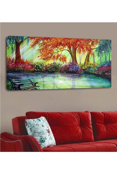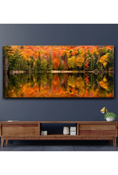 AR AJANS KANVAS TABLO Göl Kenarında Orman Manzarası Kanvas Tablo DR075