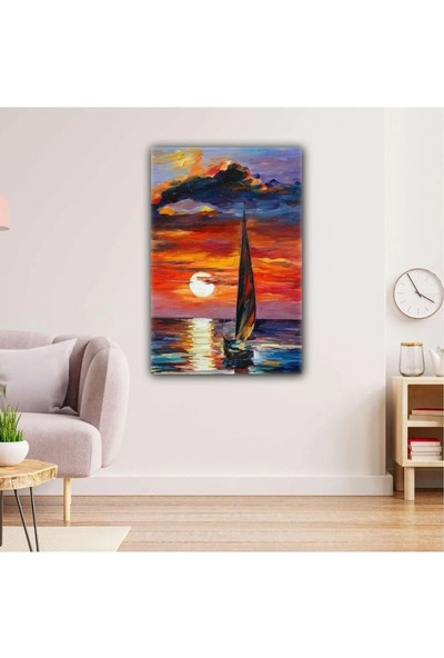 Ar Ajans Kanvas Tablo Yelkenli Yağlı Boya Efektli Gün Batımı Manzara Deniz Kanvas Tablo