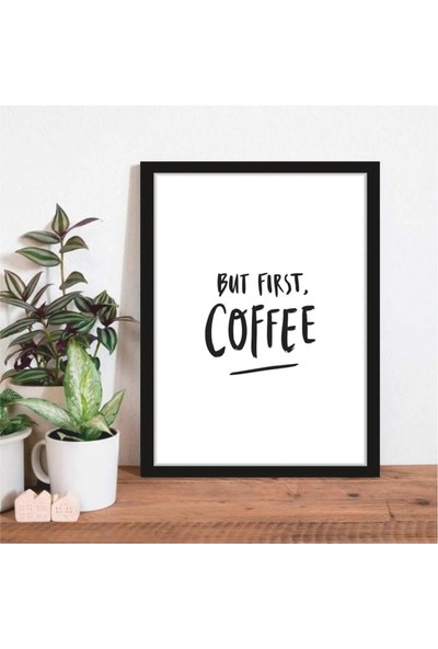 AR AJANS KANVAS TABLO But First Coffe (5) Temalı Çerçeve Görünümlü Mutfak Kahve Köşesi Balkon Mdf Poster