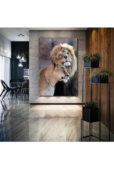 AR AJANS KANVAS TABLO Birbirine Yaslanmış Aslan Çifti Love Aşk Doğa Kanvas Tablo ART0083