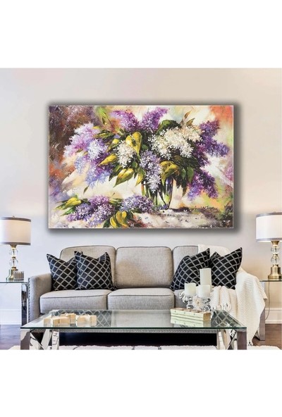 Ar Ajans Kanvas Tablo Lila ve Beyaz Leylak Vazosu Salkım Çiçek Kanvas Tablo
