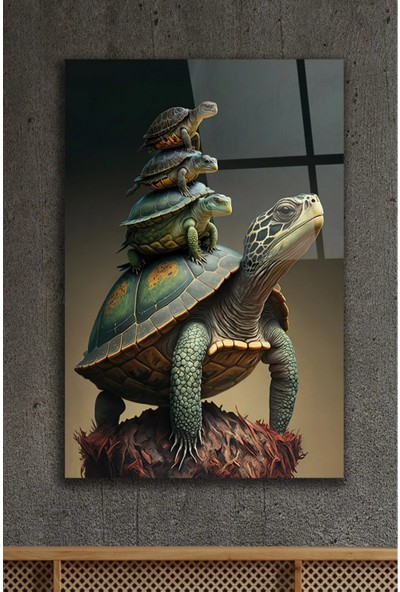 AR AJANS KANVAS TABLO Kaplumbağa Ailesi Hayvan Dekoratif Cam Tablo
