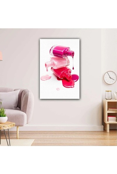Ar Ajans Kanvas Tablo Pembe Kırmızı Oje Şişesi Makyaj Kanvas Tablo