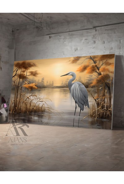 Ar Ajans Kanvas Tablo Leylek ve Göl Tasarım Dekoratif Kanvas Tablo