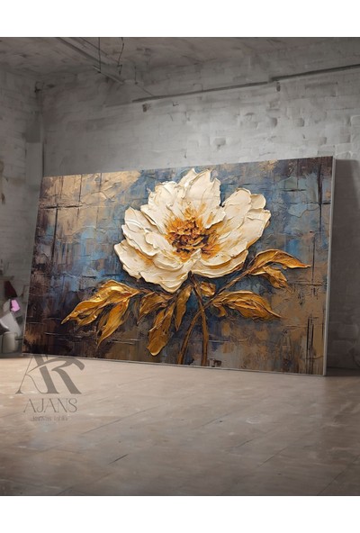 Ar Ajans Kanvas Tablo Beyaz Papatya Gold Detaylı Yağlı Boya Görünümlü Kanvas Tablo