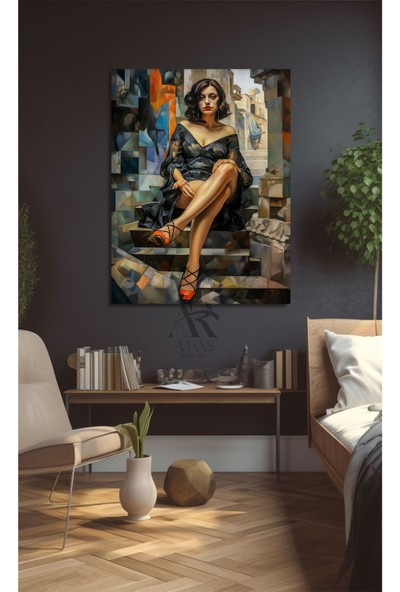 Ar Ajans Kanvas Tablo Çizgsel Detaylı Merdivende Oturan Kadın Kanvas Tablo