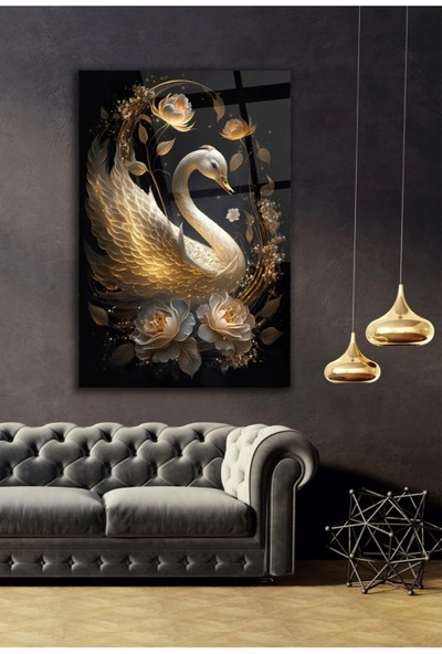 AR AJANS KANVAS TABLO Geceye Süzülen Kuğu Dekoratif Cam Tablo