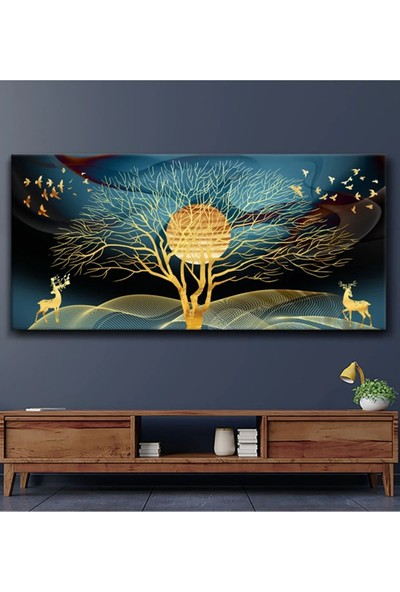AR AJANS KANVAS TABLO Sürreal Hayat Ağacı ve Geyikler Kanvas Tablo DR010