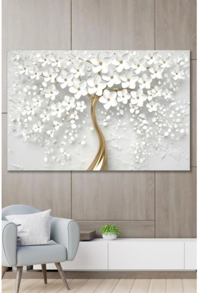 Ar Ajans Kanvas Tablo Dalında Beyaz Çiçekler Dekoratif Yağlı Boya Görünümlü Kanvas Tablo
