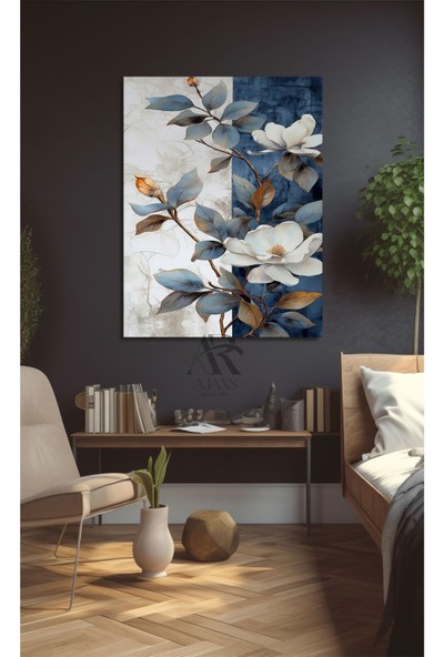 Ar Ajans Kanvas Tablo Mavi- Beyaz Tonlu Çiçekler Kanvas Tablo