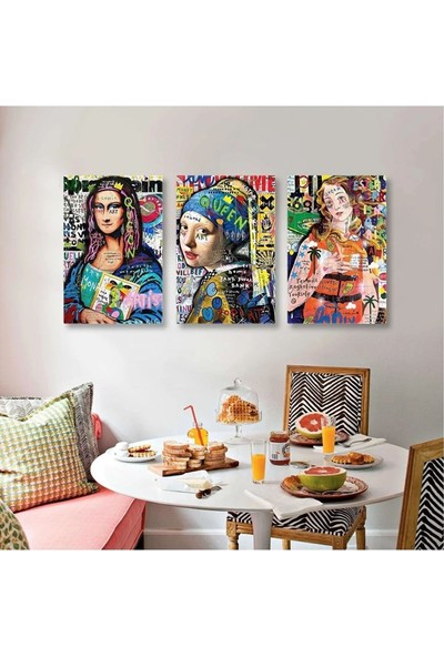 Ar Ajans Kanvas Tablo Mona Lisa Inci Küpeli Kız ve Venüsün Doğuşu Grafiti Sokak Sanatı 3 Lü Set Kanvas Tablo