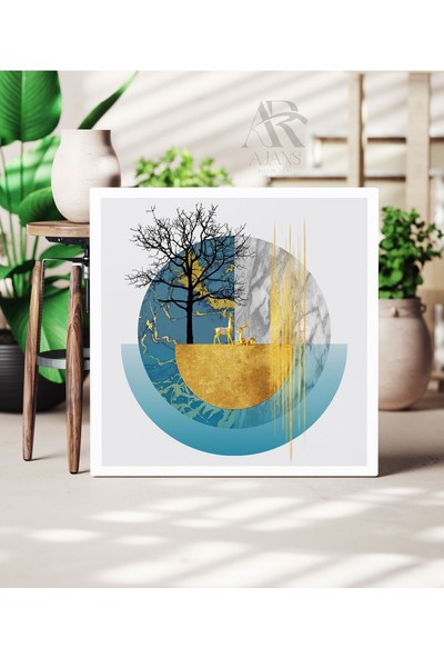 Ar Ajans Kanvas Tablo Daireler Içinde Altın Geyik Boho Tarzi Dekoratif Kanvas Tablo