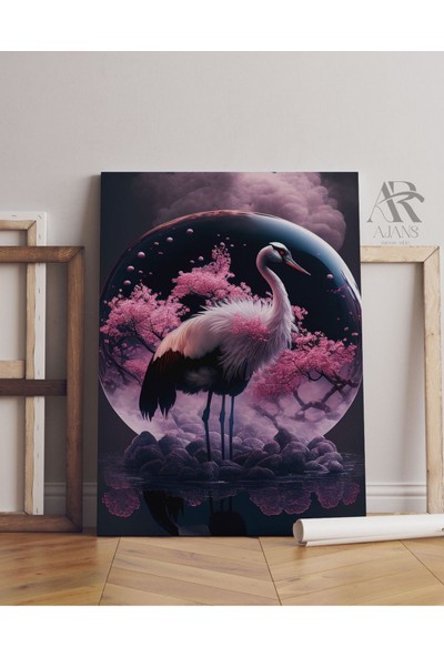 Ar Ajans Kanvas Tablo Sakuralar Altında Turna Dekoratif Kanvas Tablo