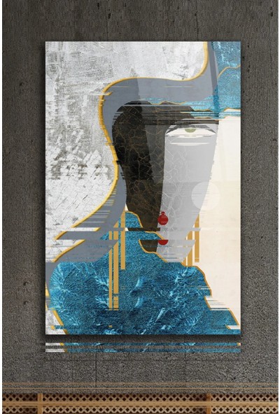 AR AJANS KANVAS TABLO Soyut Gold Yüz Hatları Dekoratif Cam Tablo