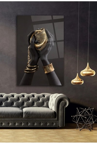 AR AJANS KANVAS TABLO Altın Takıların Ihtişamı Dekoratif Cam Tablo