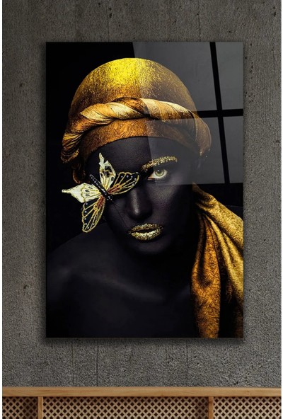 AR AJANS KANVAS TABLO Afrikalı Kadın Yöresel Kelebek Dokulu Dekoratif Cam Tablo