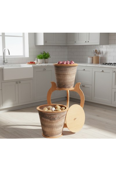 2 Katlı Ahşap Nordic Style Patateslik ve Soğanlık Sebzelik Organizer Düzenleyici