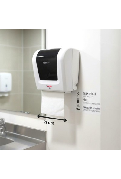 Ar Armese Sensörlü Otomatik Kağıt Havlu Verici 21 cm Fotoselli, Hijyenik Adaptörlü Veya Pilli Kullanım, Beyaz