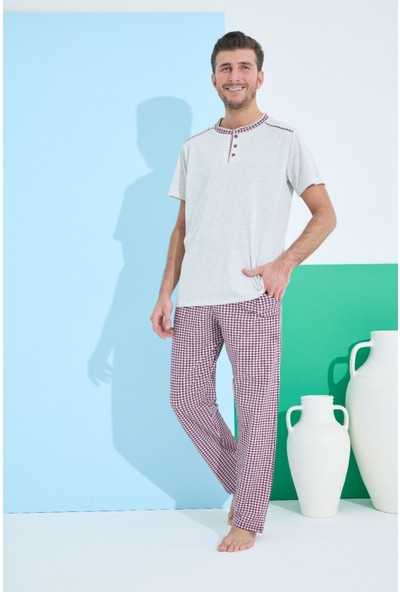 Aras Erkek Kısa Kolpijama Takımı -Kırmızı Ekoseli--
