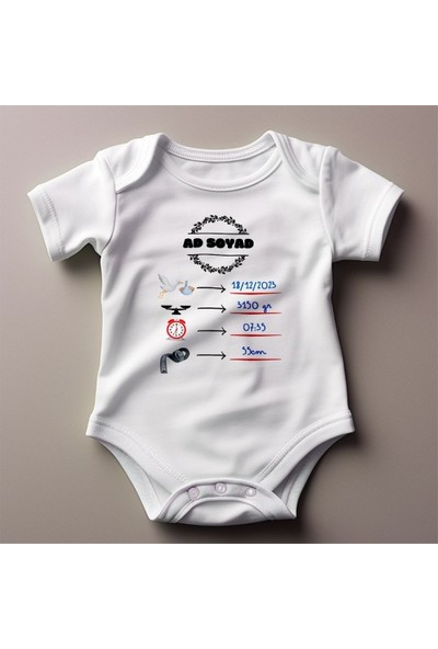 Bebek Doğum Çizelgesi Temalı Baskılı Zıbın