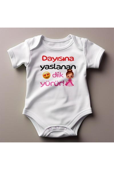 %100 Pamuk Dayısına Yaslanan Dik Yürür Baskılı Bebek Zıbın