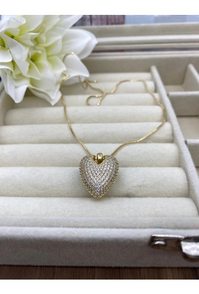 Arasera Çelik Zirkon Taşlı Altın Renk Kalp Kolye