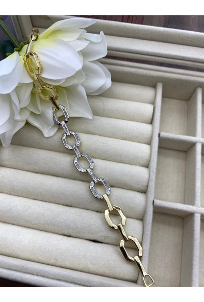 Arasera Çelik Zirkon Taşlı Kuyumcu Model Altın Renk Bileklik