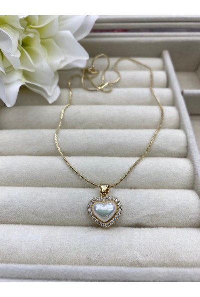 Arasera Çelik Altın Renk Kalp Taşlı Kolye