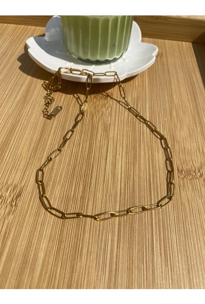 Arasera 14 Ayar Kaplama Çelik Ataç Oval Zincir Kolye