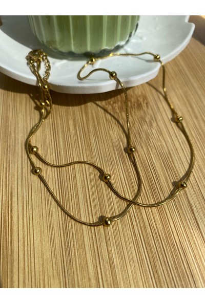 Arasera Çelik Gold Renk Top Top Model Kombin Kolye