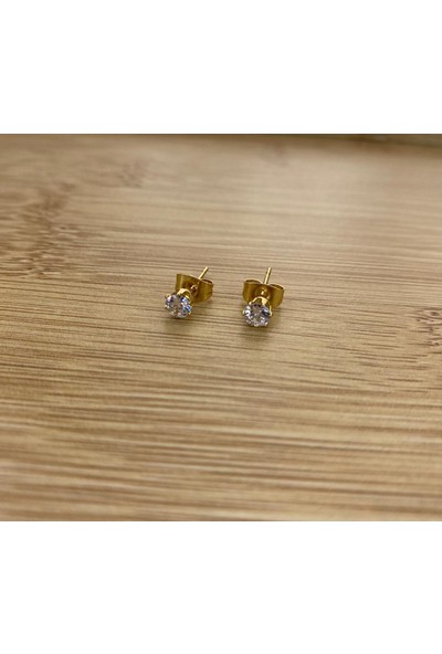 Arasera Çelik Gold Renk Zirkon Taşlı 4mm Top Küpe