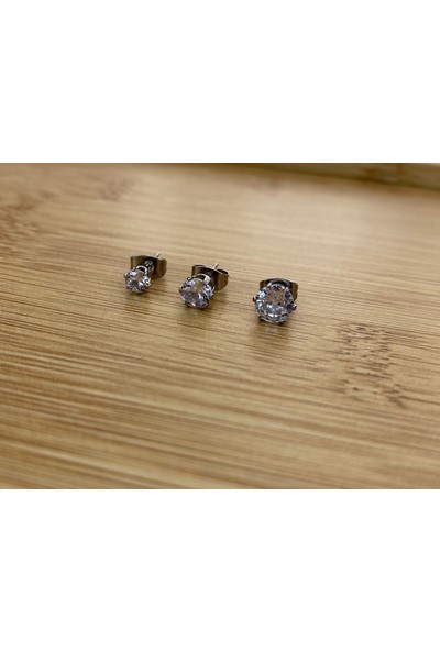 Arasera Çelik Gümüş Renk Zirkon Taşlı Kombin Top Küpe