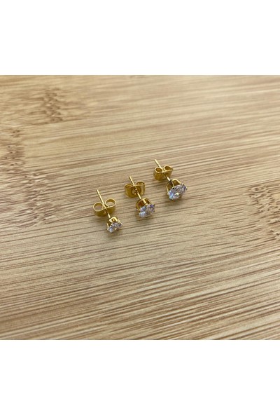 Arasera Çelik Gold Renk Zirkon Taşlı 3mm Top Küpe