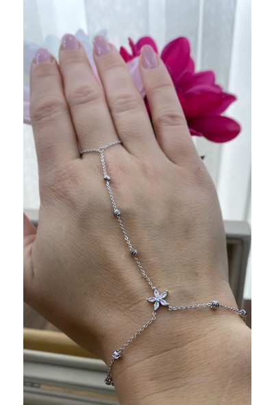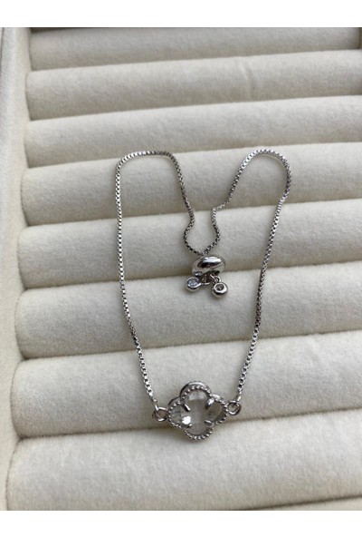 Arasera Çelik Zirkon Taşlı Gümüş Renk Çiçek Model Bileklik