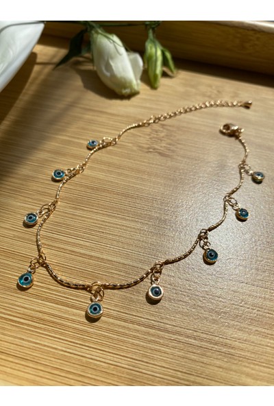 Arasera Nazar Boncuklu Gold Renk 316L Çelik Halhal