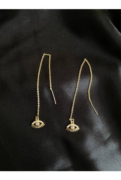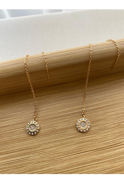 Arasera Çelik Altın Renk Zirkon Taşlı Zincir Detaylı Küpe