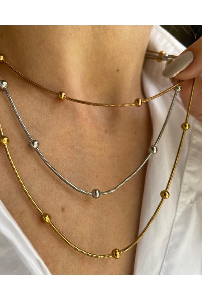 Arasera Ince Toplu Dorika Model 3lü Altın Rose Gold Gümüş Renk 316L Çelik Kolye